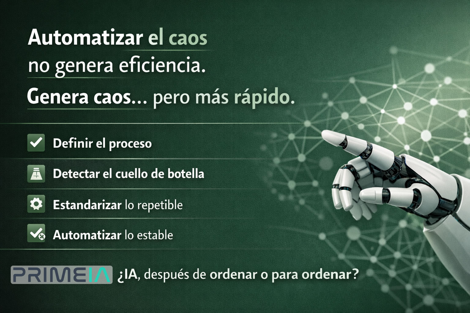 En PrimeIA transformamos tus procesos con IA y desarrollo a medida, para que tu negocio gane agilidad, claridad y resultados reales.